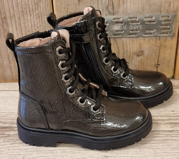 Wat een gave kleur is dit blauw – groen metallic op een mooie smalle leest van Giga, met deze veterlaarsjes sta jij te shinen op het schoolplein.